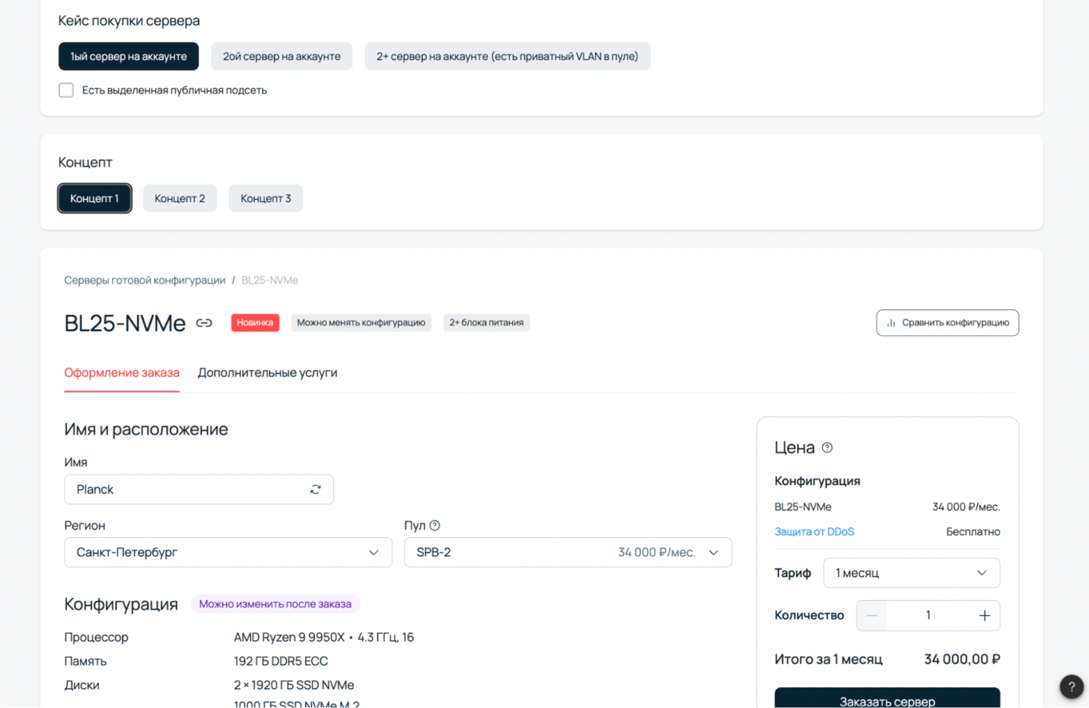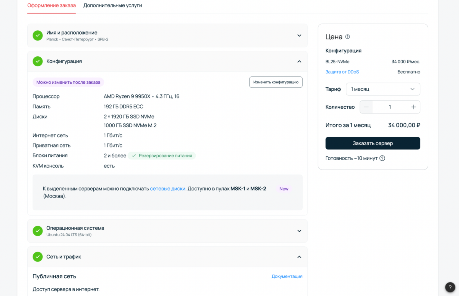 Отображение новых моделей потребления интернет-трафика или полосы при заказе сервера