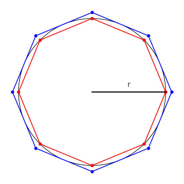 С увеличением количества сторон периметр фигуры приближается к длине окружности. Источник.