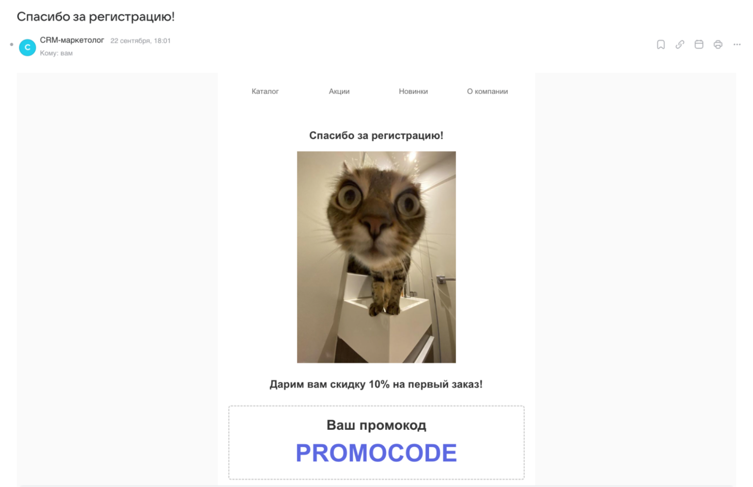 Для примера отправим welcome-письмо, которое могут получать пользователи после прохождения регистрации:
