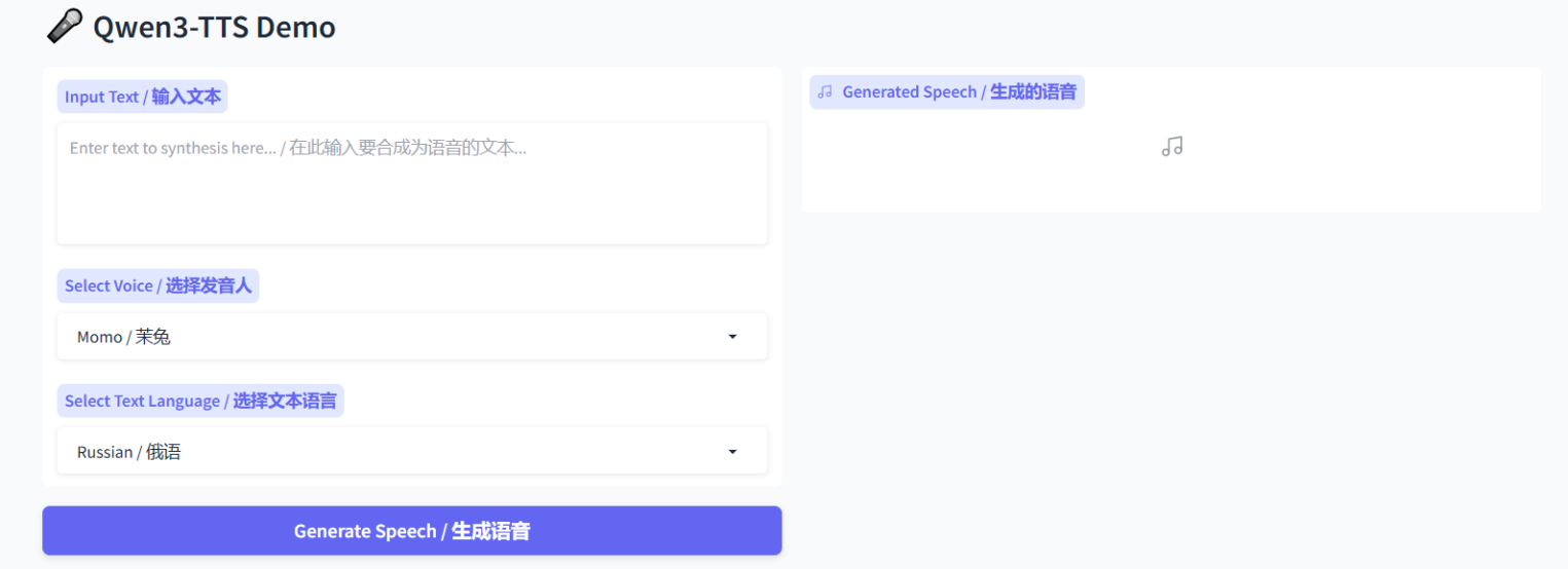 Сравнение начнем с модели генерации речи — Qwen TTS-Flash. Тестировать будем на русском языке: проверим дикцию, наличие артефактов, устойчивость к длинным текстам и корректность интонаций. Требования — почти как к профессиональному диктору. 🙂 Приступим.
