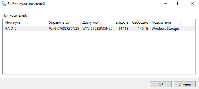 В открывшемся окне повторно выберите пул носителей и нажмите ОК.