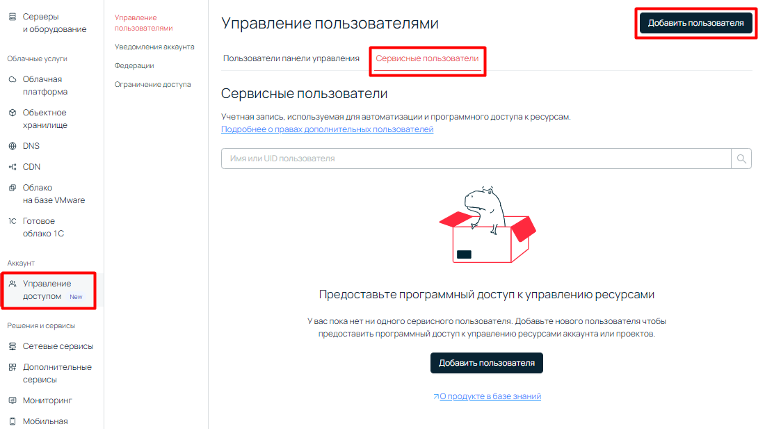 Более подробную информацию о ролях сервисных пользователей вы можете узнать в документации — Типы и роли пользователей.