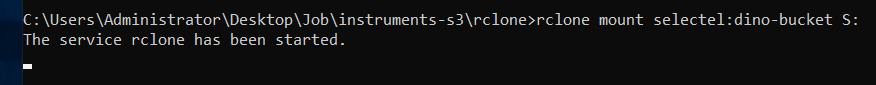 C:\Users\Administrator\Desktop\Job\instruments-s3\rclone\rclone.exe mount selectel:dino-bucket S:
