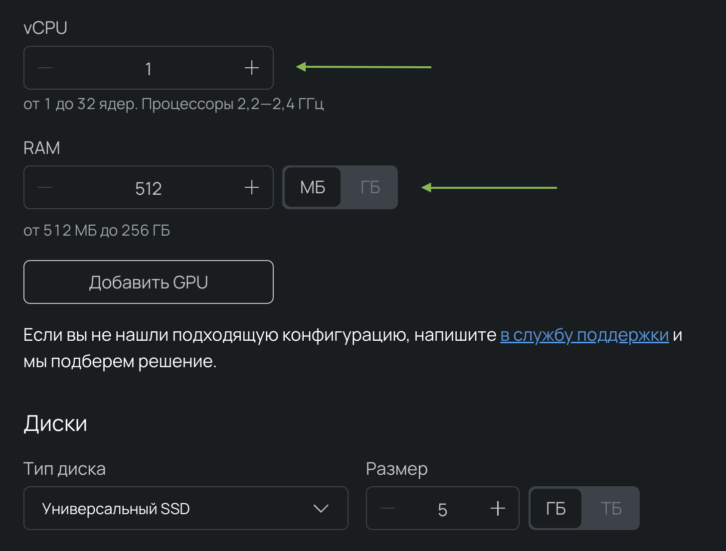 2. В настройках указываем имя проекта, в качестве ОС выбираем Ubuntu и устанавливаем минимальную конфигурацию: 1 vCPU и 512 МБ RAM. Для работы приложения много мощностей не нужно.