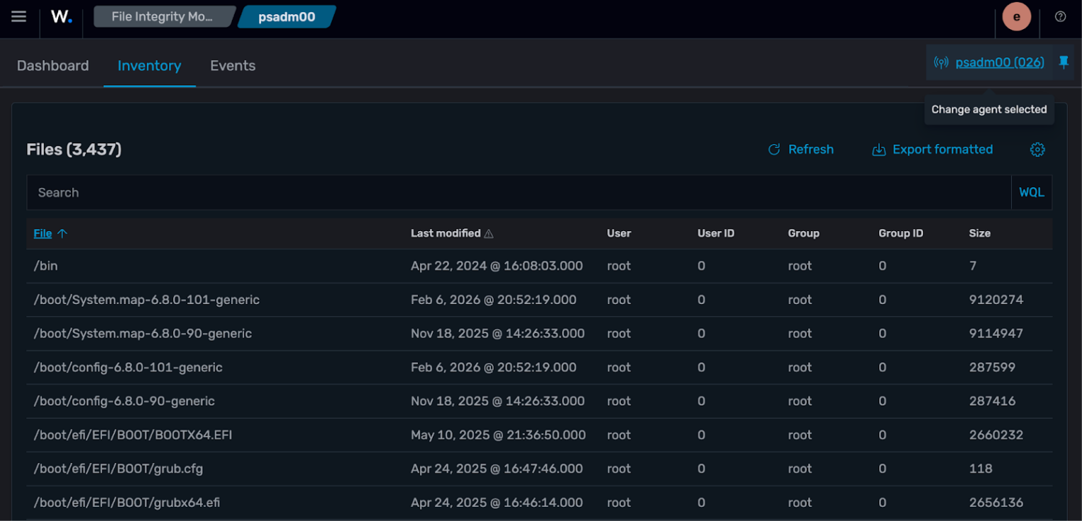 Отслеживает изменения файлов: создание, модификацию, удаление, управление правами и владельцами — и директорий в реальном времени:. Реализован через wazuh-syscheckd и работает на Linux, Windows и macOS.