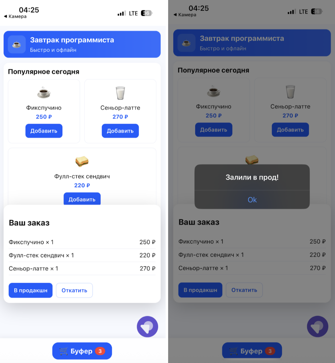 Вы готовите простой index.html с демо‑страницей — например, возьмем мини‑лендинг кафе «Завтрак программиста» из прошлой статьи с кнопками и базовой логикой на JavaScript.
