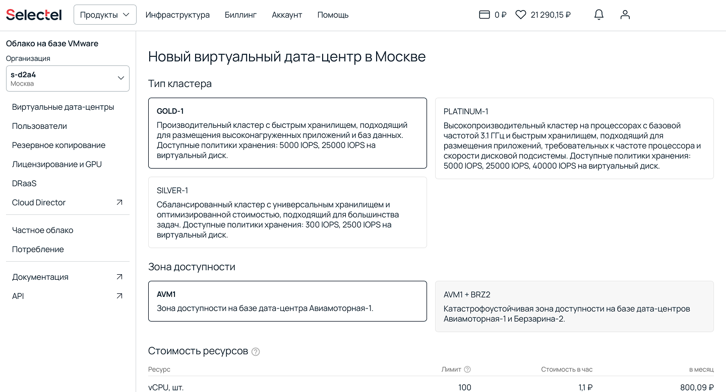 Как начать работу с публичным облаком на базе VMware в Selectel