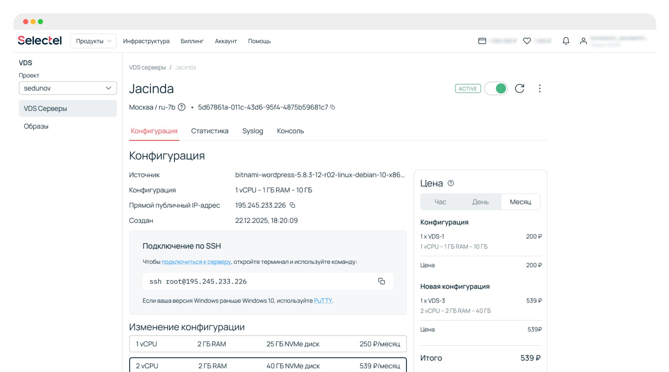 VDS — упрощенная версия облачных серверов с фиксированными конфигурациями, единой ценой за конфигурацию и простым интерфейсом.